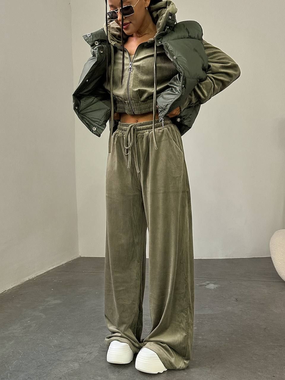 Велюровий спорт костюм в кольорі хакі №595374