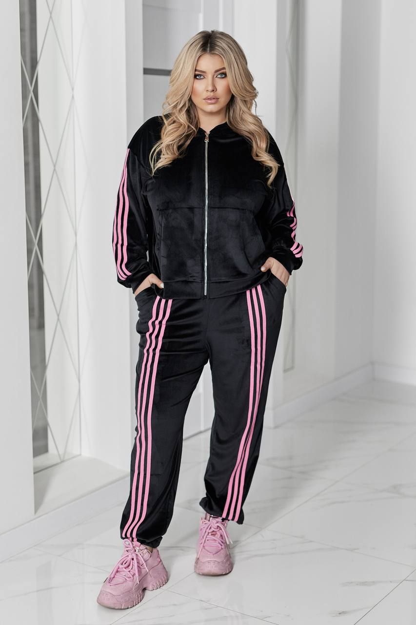 Жіночий велюровий костюм чорний + малина №596047