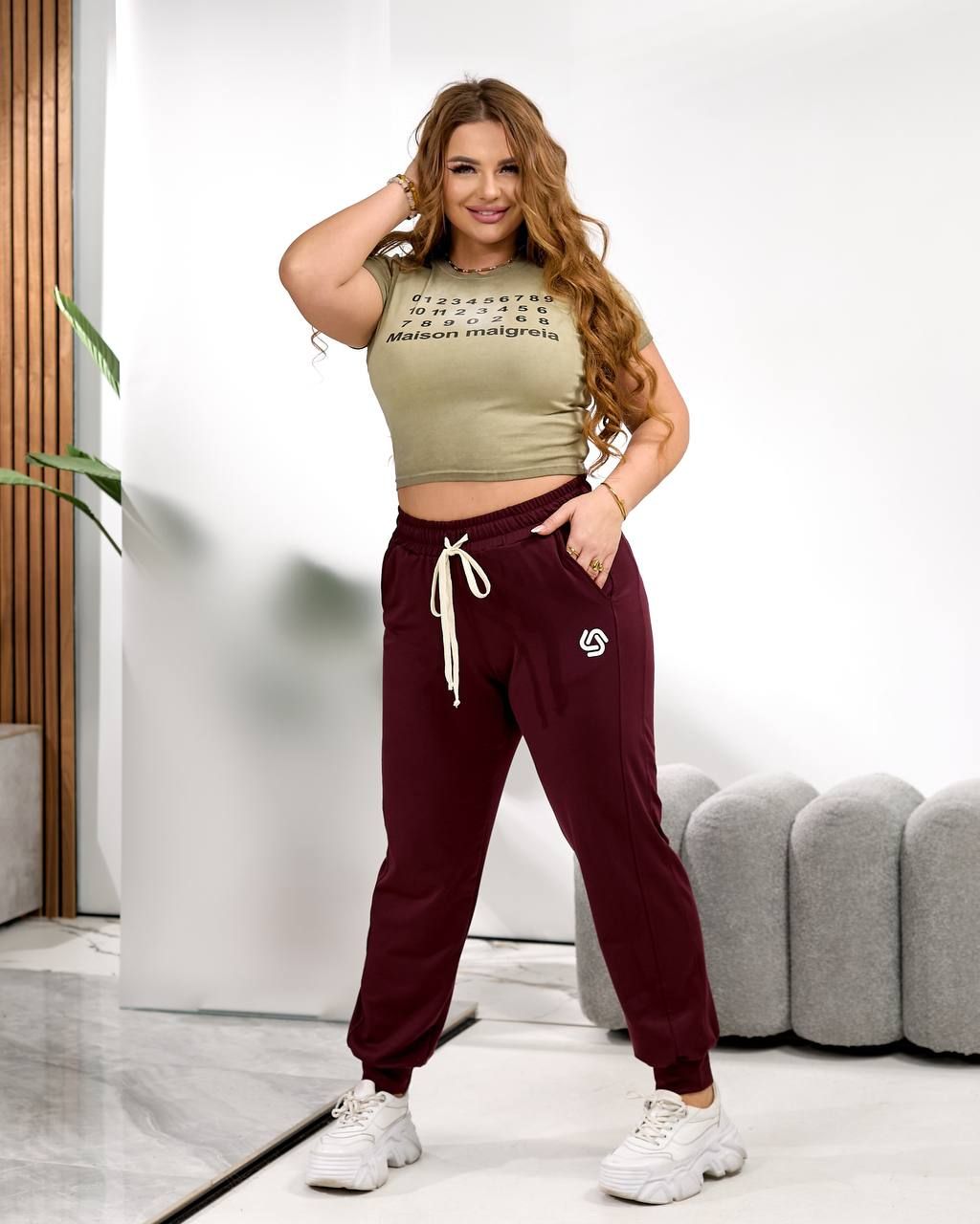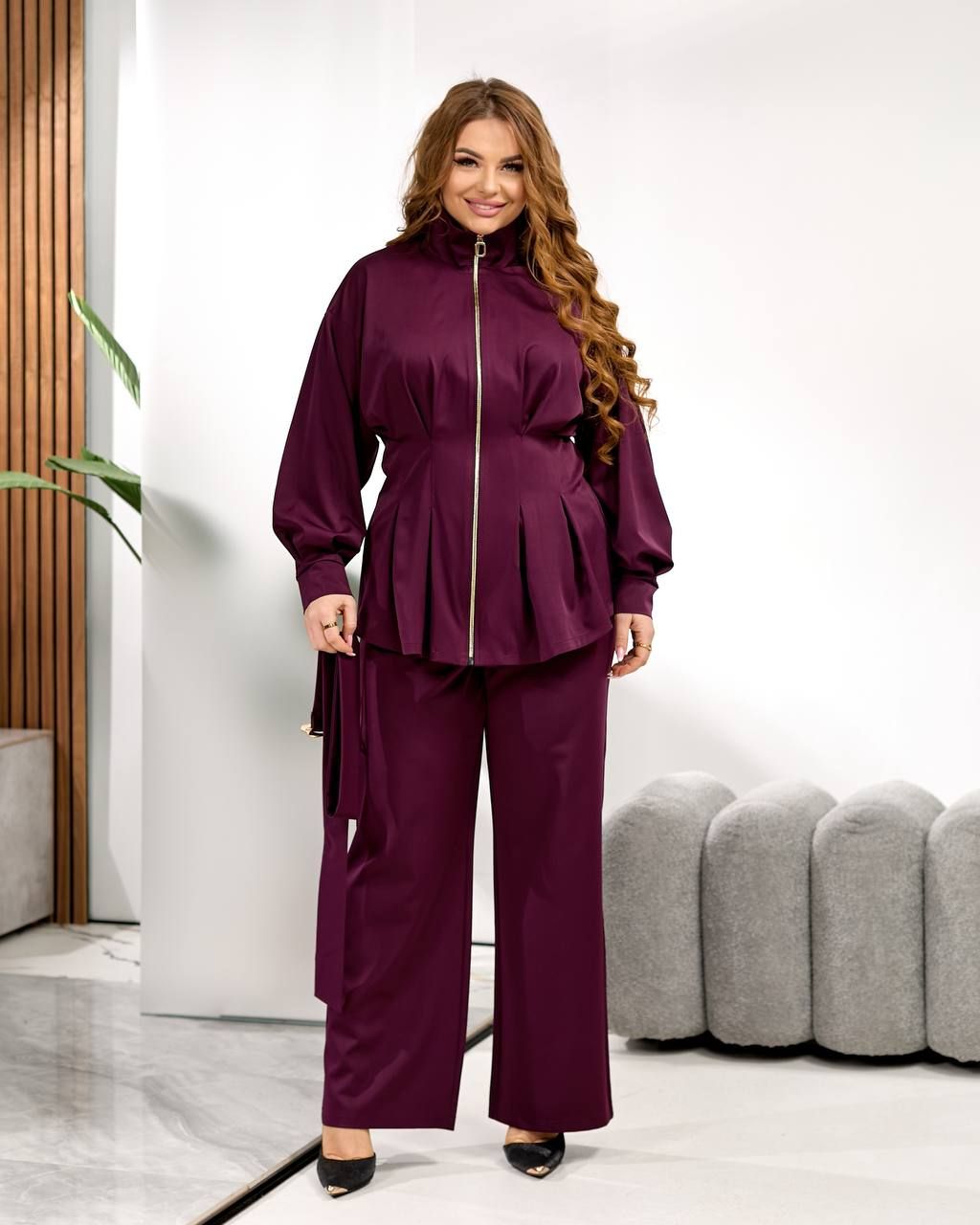 Елегантний, стильний жіночий костюм бургунді №595546