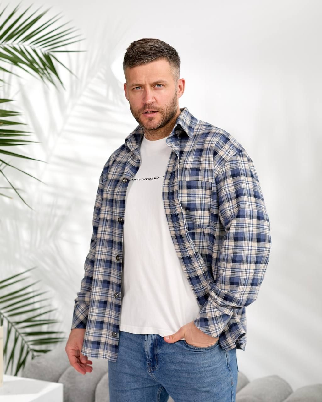 Чоловіча сорочка в клітинку джинс №597388