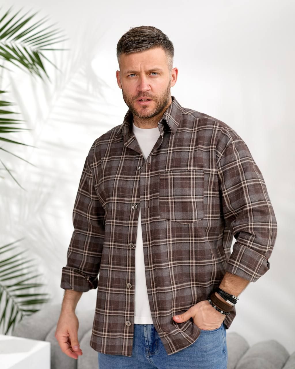 Чоловіча сорочка в клітинку шоколад №597389