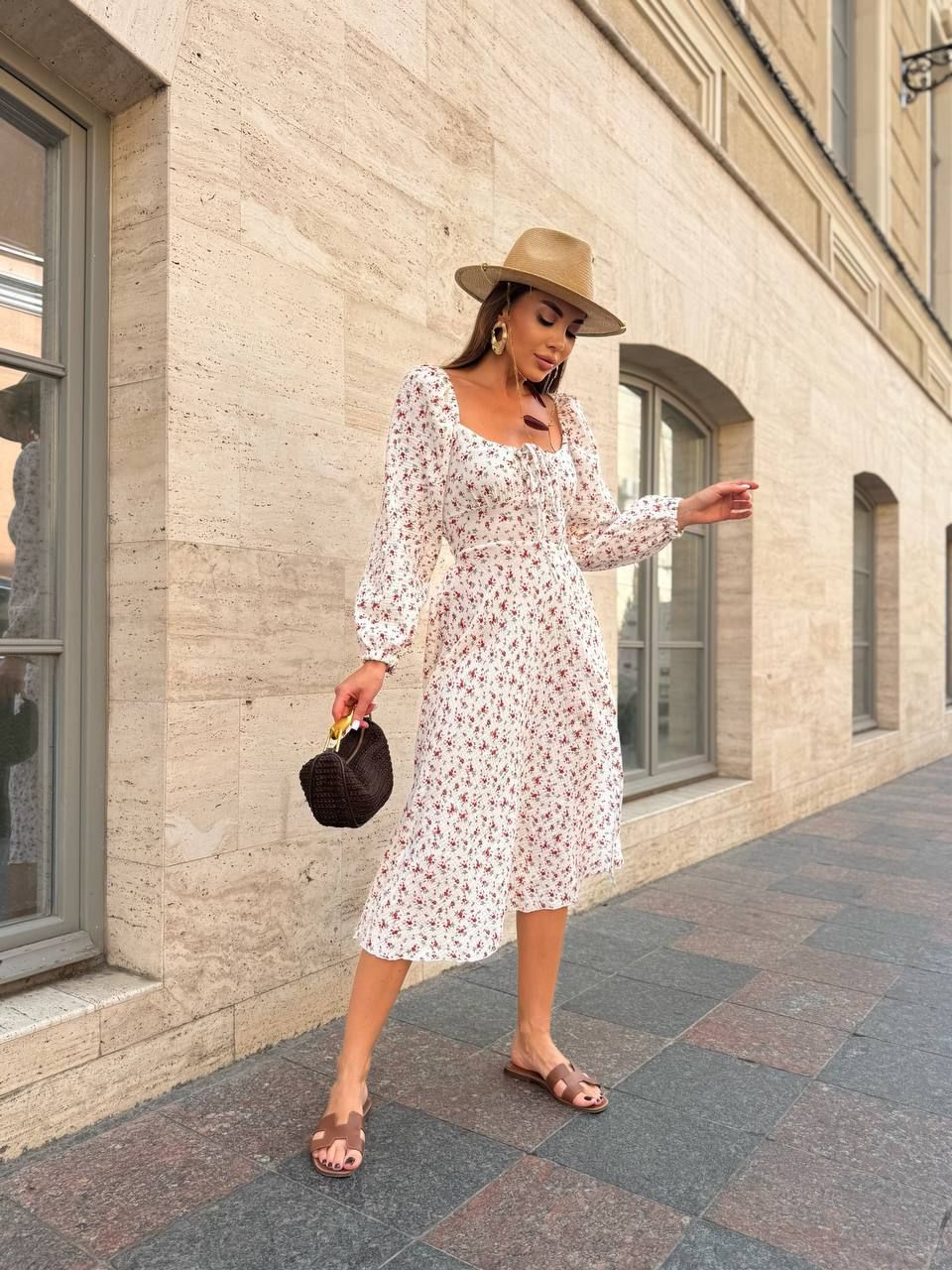 Жіноча муслінова сукня біла в червону квіточку №595387