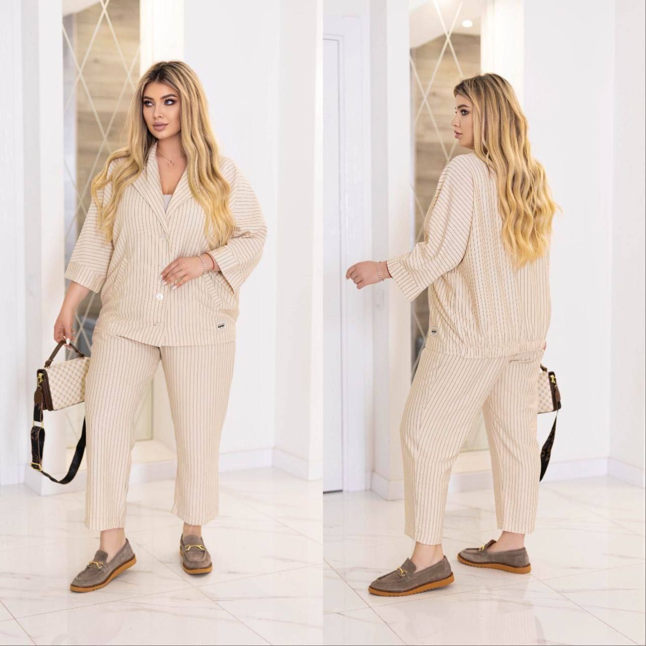 Костюм в смужку бежевий №597295