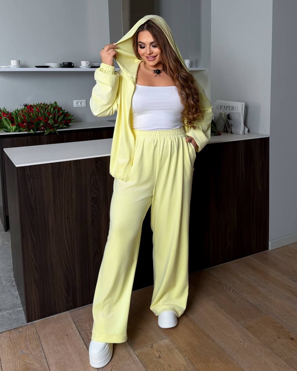 Велюровий спорт костюм жовтий №595573