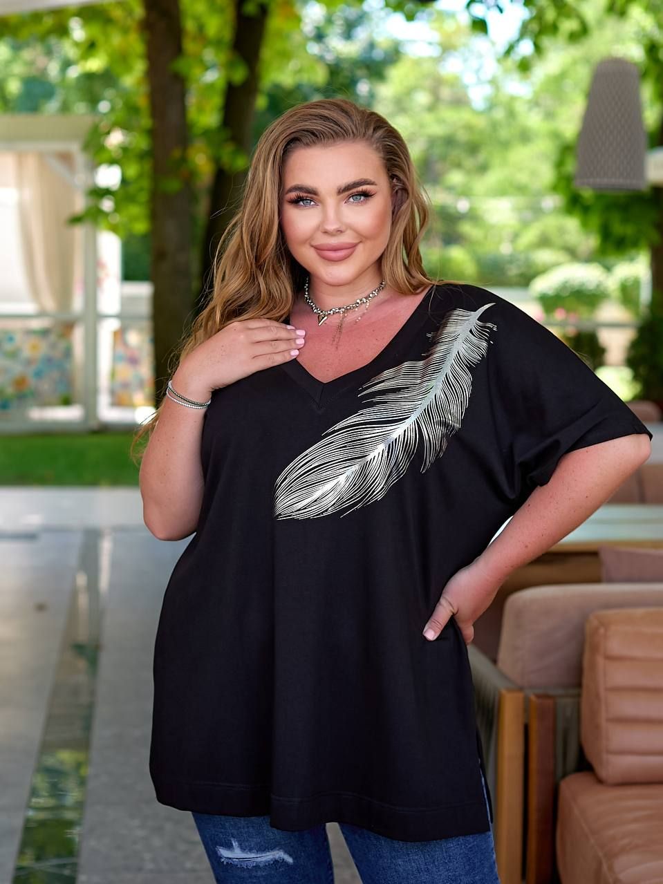 Подовжена футболка в стилі OVER чорна №597543