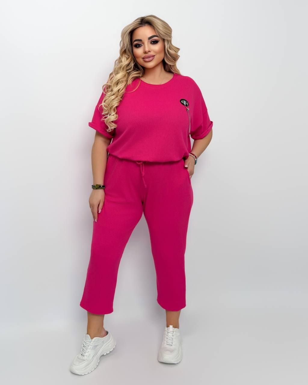 Вільний спортивний костюм з трикотажу «Вафелька» малина №597977