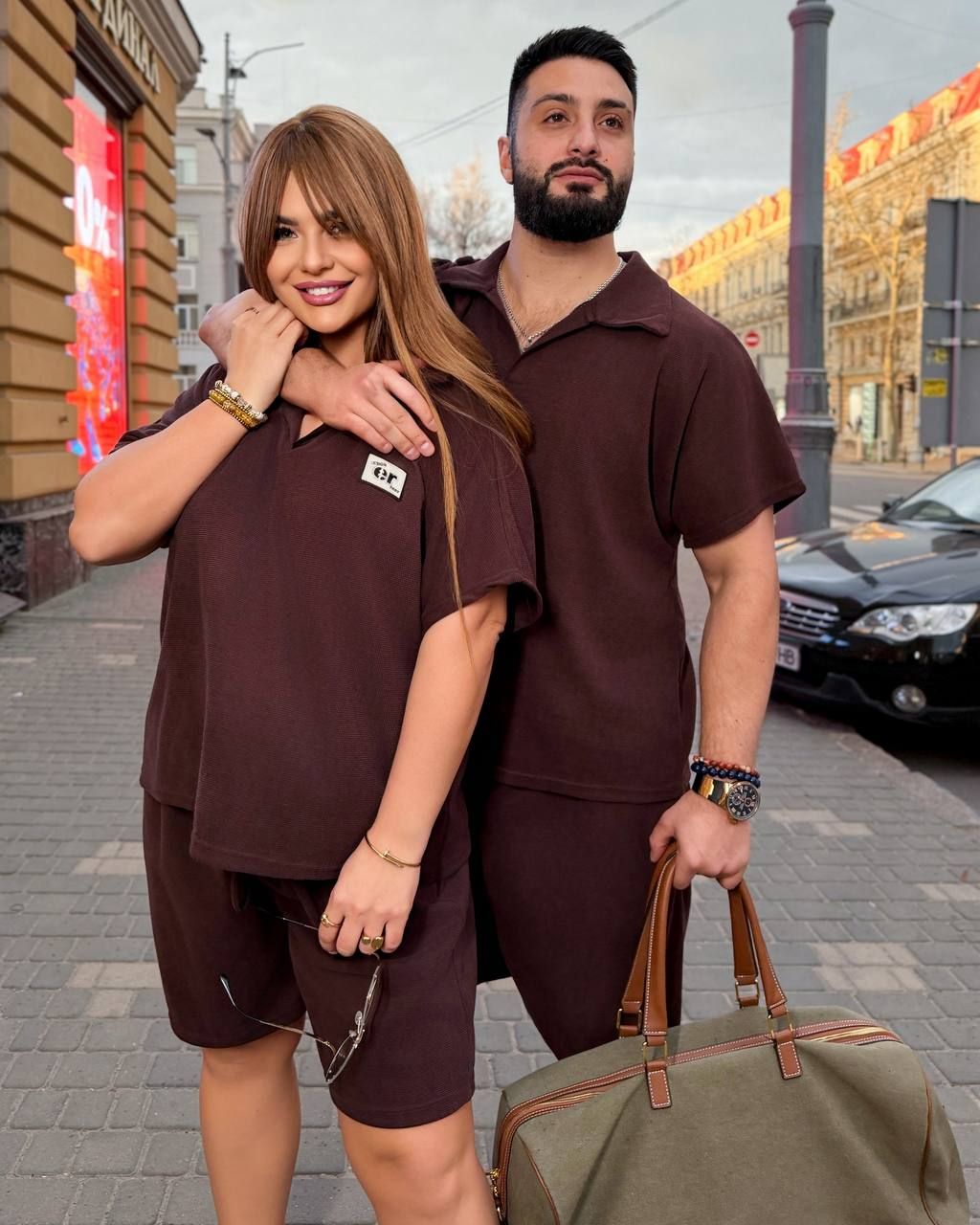 Жіночий стильний костюм з шортами шоколад №597765