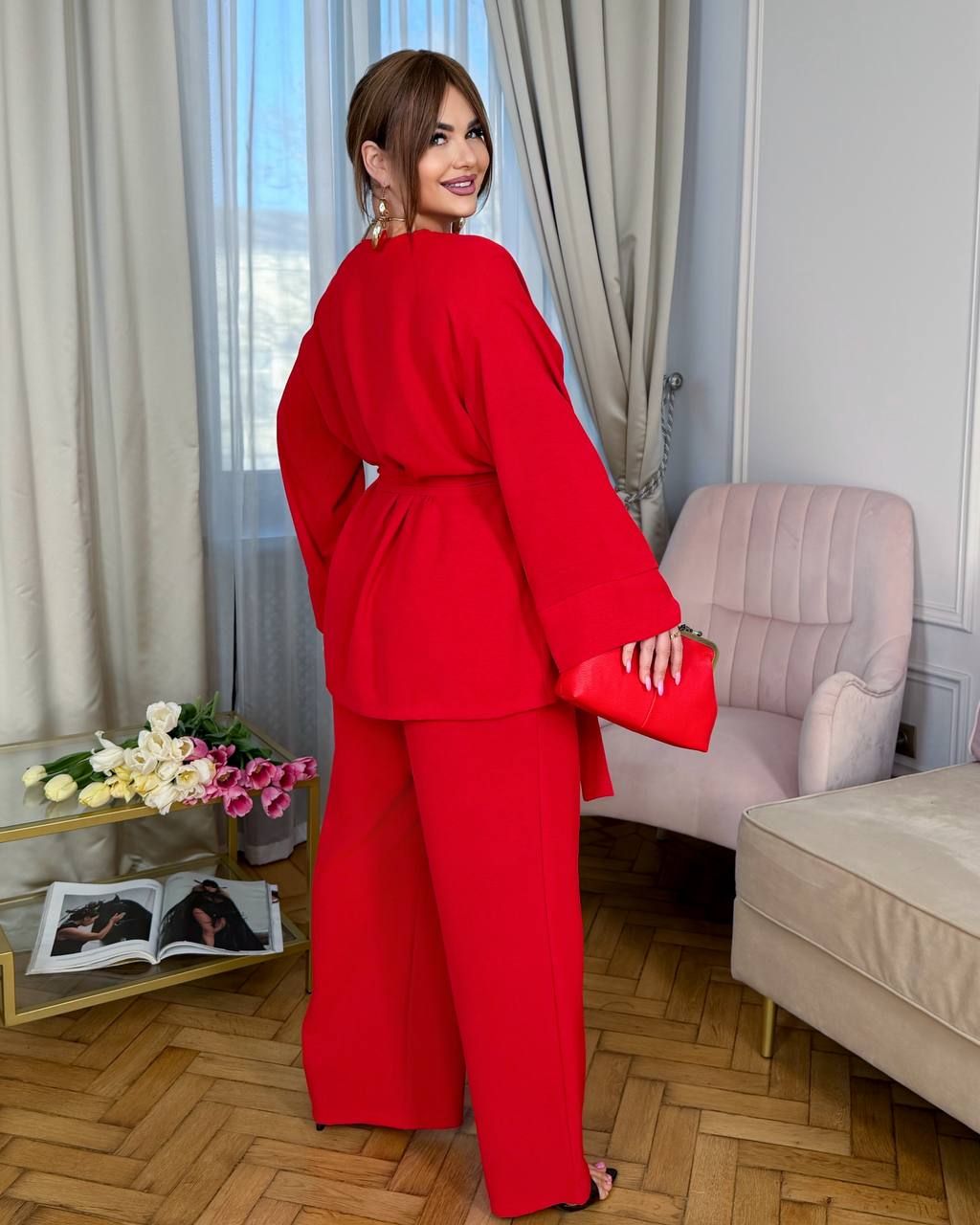 Легкий брючний костюм червоний №597788