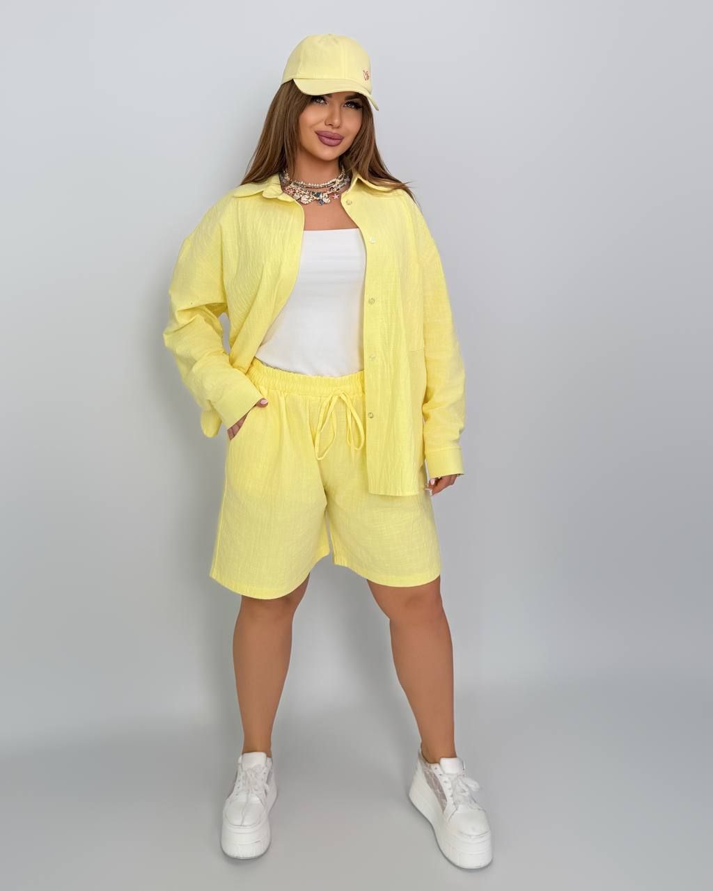 Костюм із жатого льону лимон №597630