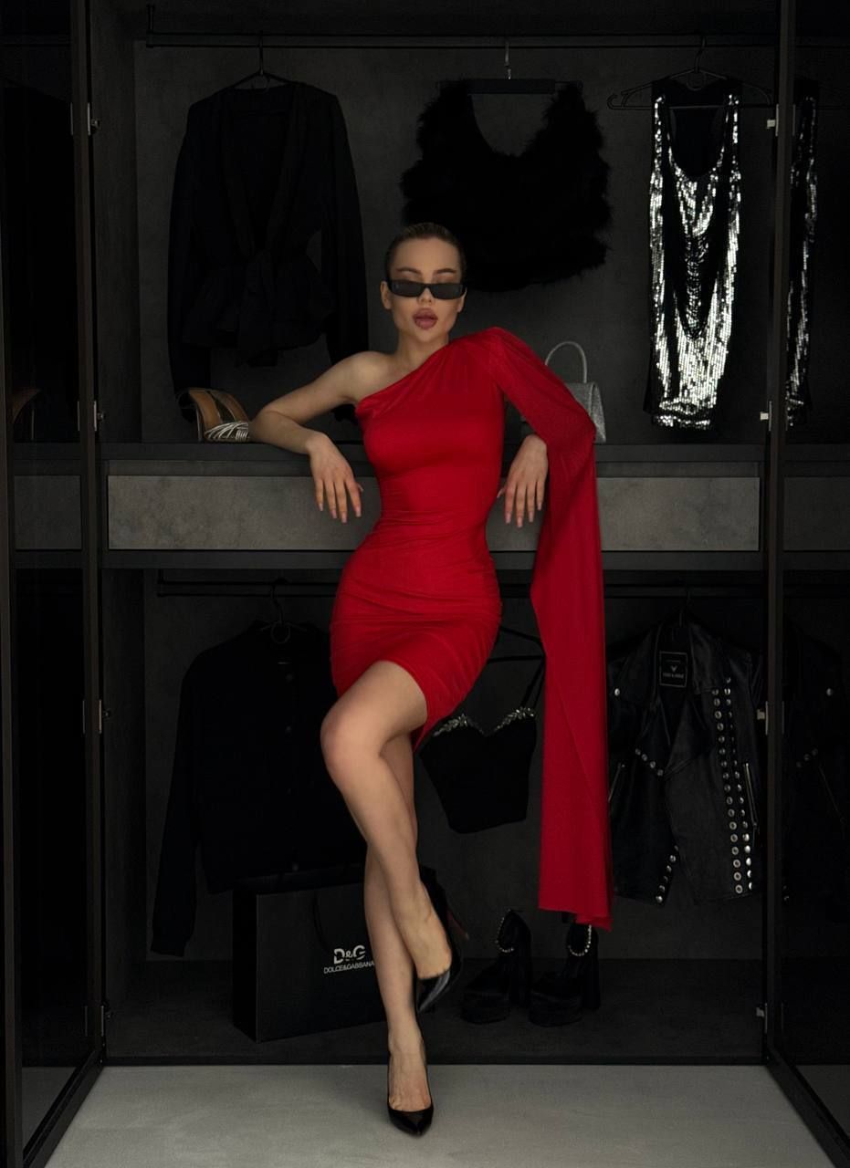 Сукня червона зі зйомною шалью - шик, комфорт, і не скінченні експерименти №597655