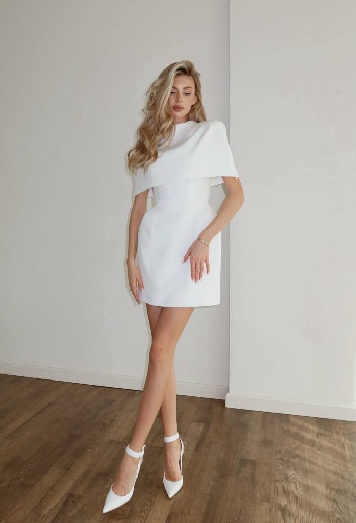 Лаконічна сукня в комплекті з накидкою-кейпом створює витончений та статусний образ №595004